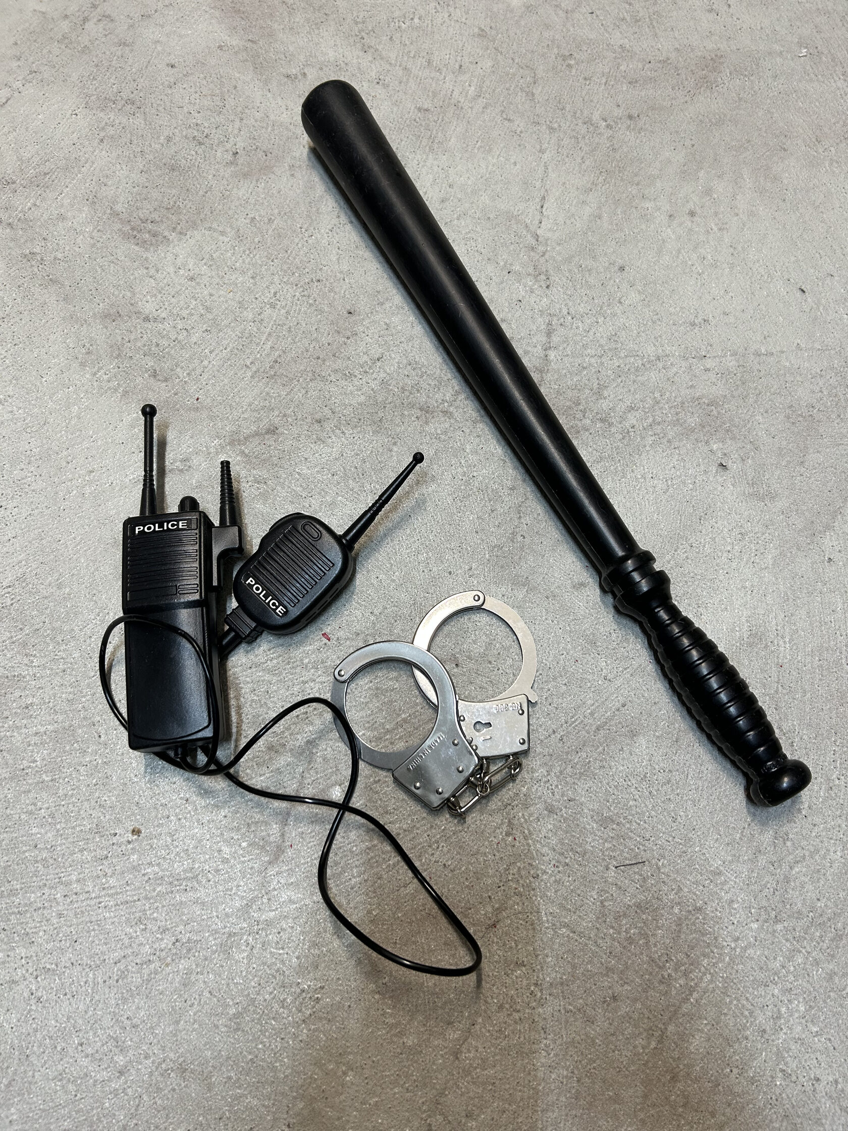 (бита пластик 55см, рация на пластиковой заколке, наручники)